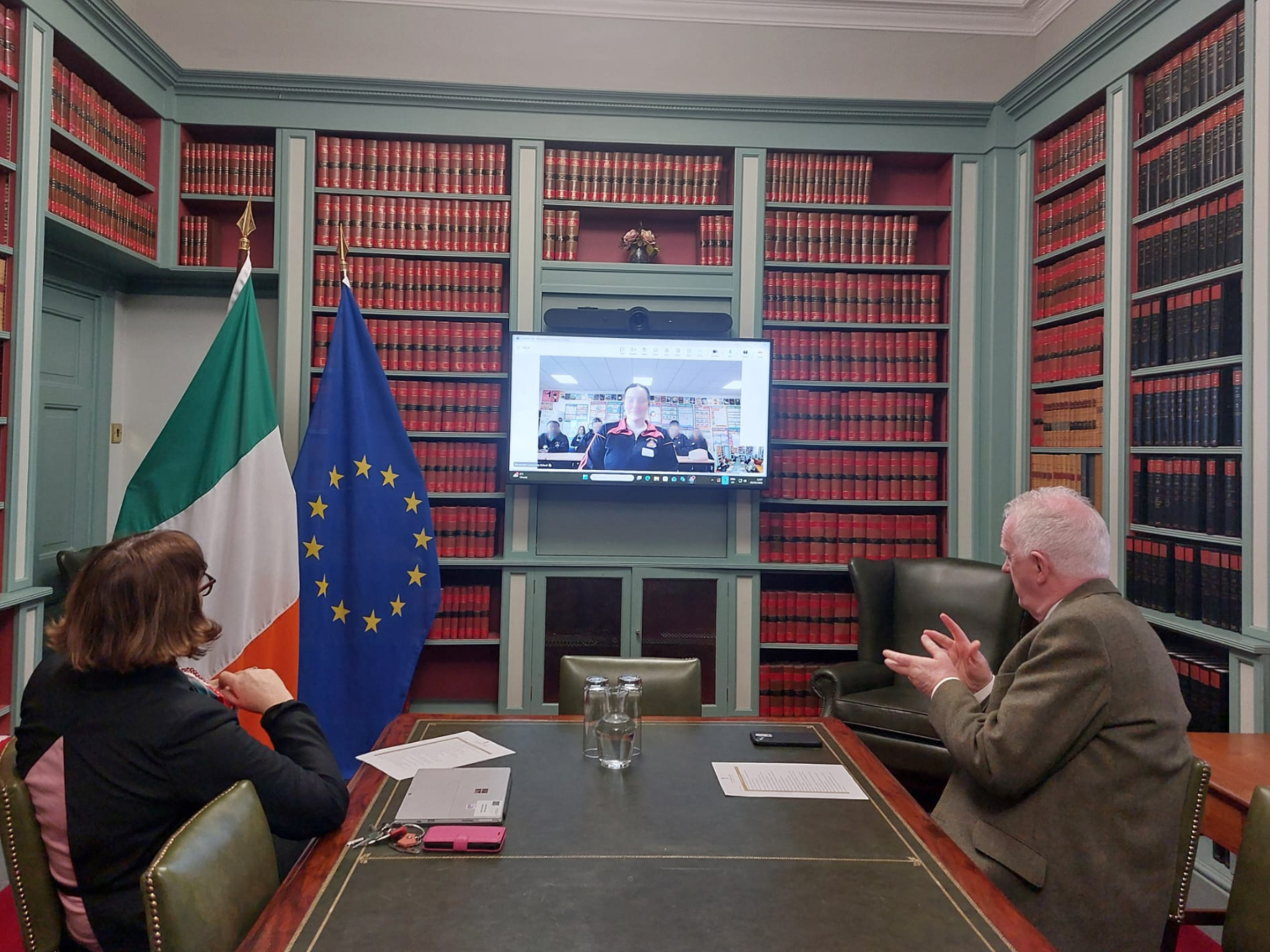 Mr Justice Charleton and Ms Justice Gearty held a ‘comhrá’ with Mountrath CS, Co Laois
