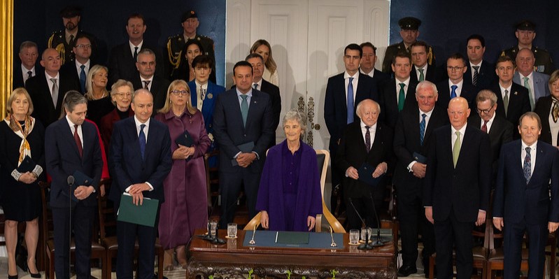 Chief Justice administers Constitutional Declaration of Office to President Connolly at Dublin Castle