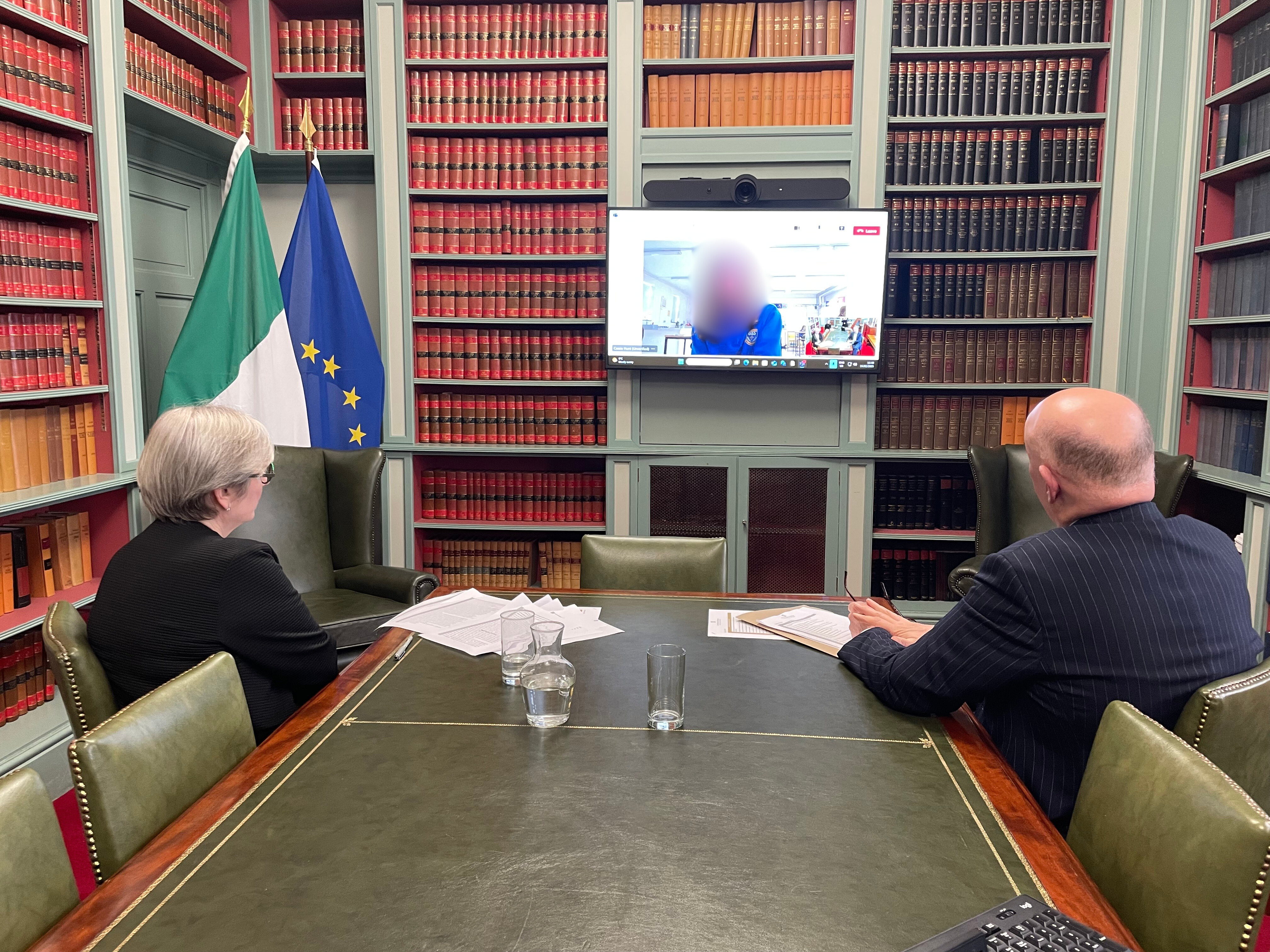Comhrá is an educational outreach programme which enables second-level students to participate in question-and-answer sessions with judges of the Supreme Court of Ireland from anywhere in Ireland via video call.